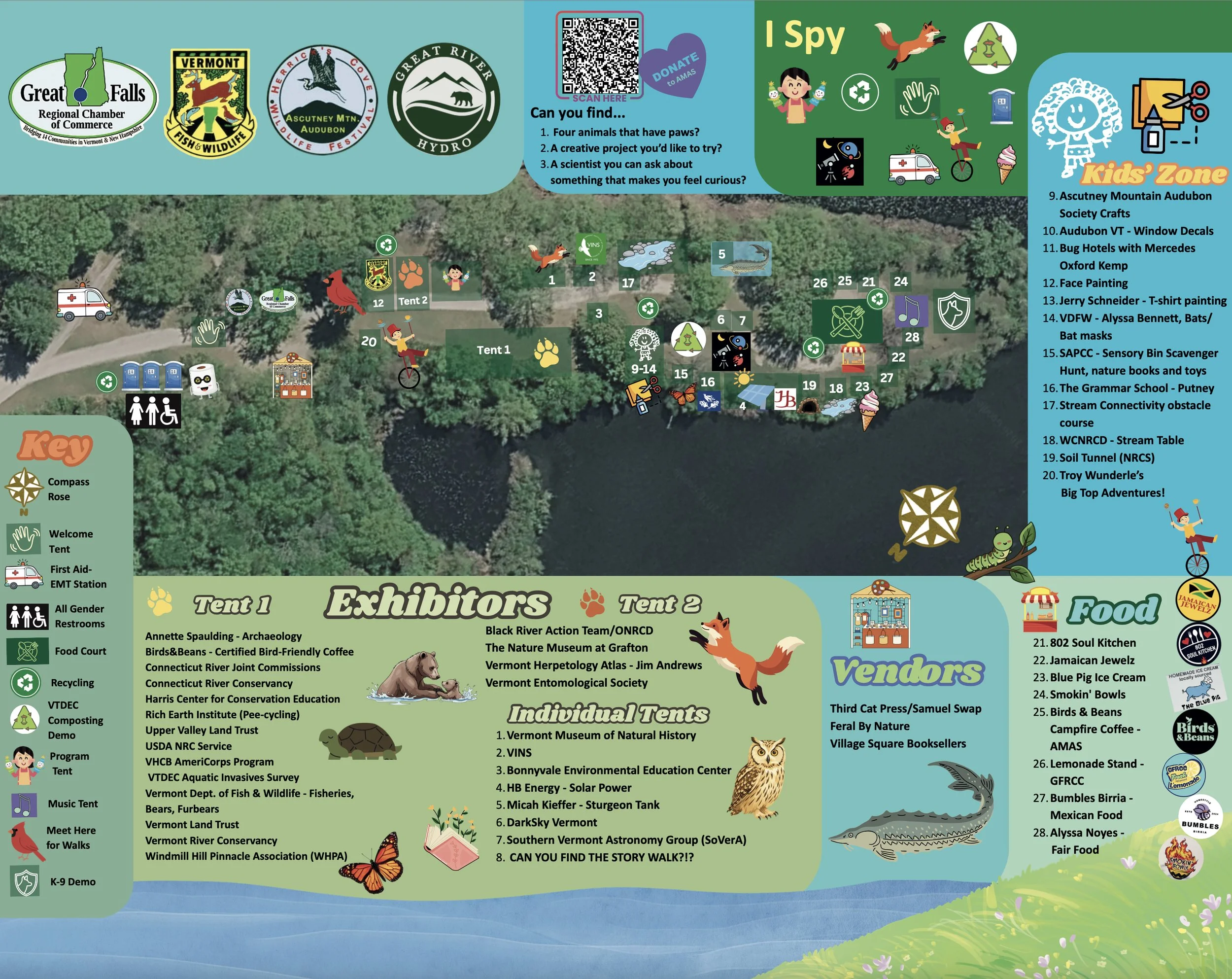 The festival starts with an early morning bird walk at 7 am, starting at the boat ramp at the end of Herricks Cove Road. The main festival venue opens at 9:30 am. Another fun-filled day for the whole family. The current schedule is posted here. A map can be found on the festival webpage. Expect to see VINS with Raptors Up Close, Jim Andrews with herps, Mike Clough with live animals, Lindsey with her puppet pals, Jerry with t-shirt painting, Troy’s Big Top Circus, plus many activities, exhibits, craft and food vendors.